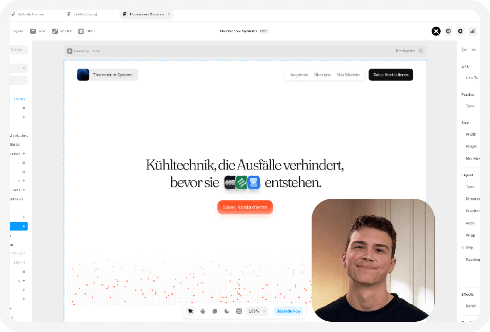 Die meisten Agenturen liefern entweder schöne Websites oder funktionale Websites. Wir verbinden beides: Modernes Design, das Aufmerksamkeit schafft und gleichzeitig konvertiert. Deine Website soll nicht nur gut aussehen, sondern auch Leads bringen.